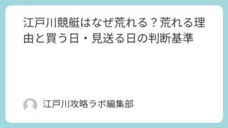 江戸川攻略 江戸川競艇はなぜ荒れる?荒れる理由と買う日・見送る日の判断基準 江戸川競艇が荒れる理由を風・波・潮・展示・モーターの観点から解説。万舟が出る条件、荒れる日の買い方テンプレ、見送る基準もまとめました。 2026.02.02 江戸川攻略