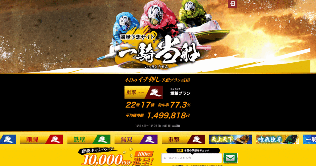 一騎当船は、迷いを減らして勝負したい人に向いた予想サービスです。江戸川のように条件で難易度が変わる競艇場では、展示航走・モーター評価・荒れる日の見分け方と併用することで、回収率を崩しにくい使い方ができます。
